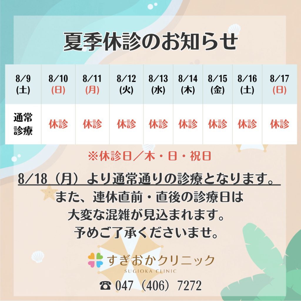いつもすぎおかクリニックをご利用いただき、ありがとうございます。