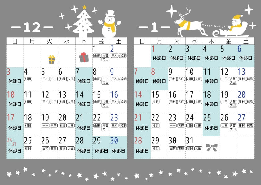 ■年末年始の休診期間=12/28(木)〜1/8(月)