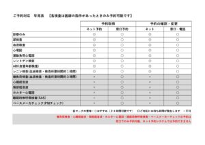 ※超音波検査・ホルター心電図・睡眠時無呼吸検査SAS・ペースメーカーチェック・糖負荷検査OGTTの予約はインターネットでの予約変更はできません。