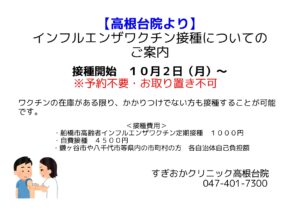 いつもすぎおかクリニック高根台院をご利用いただき、ありがとうございます。